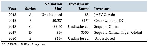 2018年,红杉中国以25亿美元的估值投了他们未公开的C轮,然后在2019年又加倍下注,跟老虎环球领投了5亿美元的D轮,让公司的估值达到50亿美元。对中国的独角兽进行背靠背的投资这种做法对于红杉中国来说并不新鲜:它还领投了TikTok母公司字节跳动的C轮和D轮。