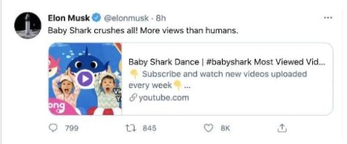 6月2日,特斯拉首席执行官埃隆·马斯克(Elon Musk)发布了一条关于热门儿童歌曲《鲨鱼宝宝》(Baby Shark Dance)的推文,结果导致三星出版公司(Samsung Publishing)股价飙升。