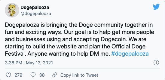 其实在网上,早有人开始张罗名为Dogepalooza的音乐节,这个音乐节据说要在秋天落地,成为“大家分享对狗狗币热爱的一个有趣的途径”。