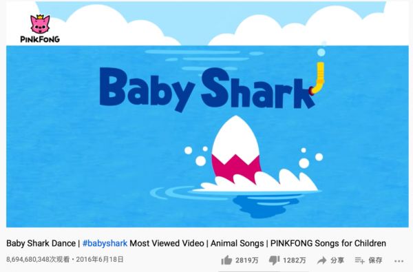 去年底,《鲨鱼宝宝》在YouTube上传后的第四年,以70.4亿的观看量,打破了2017年诞生的“洗脑神曲”《Despacito》的记录,成为了当下YouTube上观看次数最多的视频。如今,歌曲视频观看数直奔90亿而去。