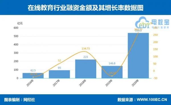 网经社电子商务中心的数据显示,2020年,在线教育行业融资金额超539.3亿元,超过了过去四年总和。