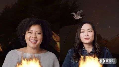 因此,Multipeer API的一大效果是,呈现一个共享的背景(Shared Context),也就是将通话场景设定在一个支持互动、具有临场感的虚拟空间中。Facebook展示了一款模拟篝火场景的AR滤镜,你和好友在通话时,可以对着面前的篝火烤棉花糖,而背景还有一只猫头鹰在飞,这只猫头鹰会从一个人的背景飞到另一个人的背景中,仿佛你和好友处在同一个界面空间中。