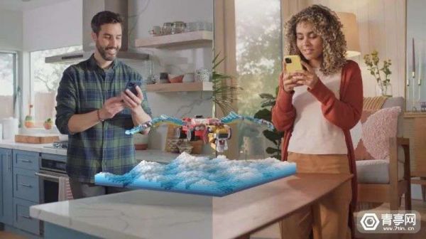 实际上就在前不久,同样是社交平台的Snapchat也推出了多人AR滤镜功能Connected Lens,可以让使用者共享AR内容,一边实现远程AR互动,一边同步聊天。比如,你可以和好友在AR模式中远程拼积木,查看乐高积木的动态效果等等。