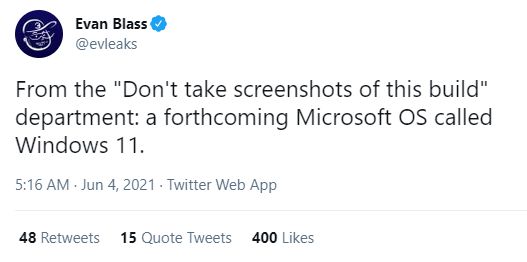 不仅如此,今日国外的爆料大神 @evleaks(Evan Blass)也加入了“Windows 11党”,他发布了一则推特: