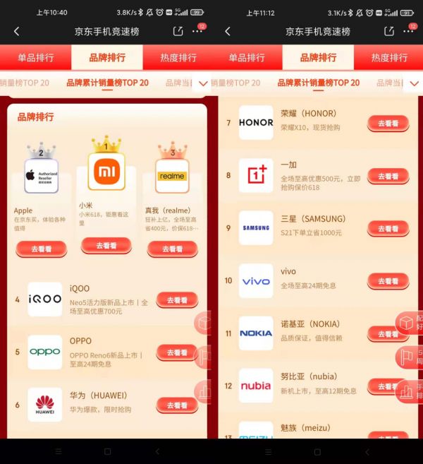 从目前的618累积手机销量排行榜单中不难看出,苹果依然是这次618购物节的最大赢家。国产手机这边,小米和realme在这次618购物节中表现同样足够出色。Redmi成功捍卫了自己“性价比之王”的地位,而realme这一波冲上前三,也证明了消费者和市场对这个“新品牌”的认可。