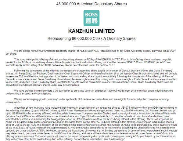 BOSS直聘更新招股书,预计下周五正式登陆纳斯达克,腾讯与今日资本为股东