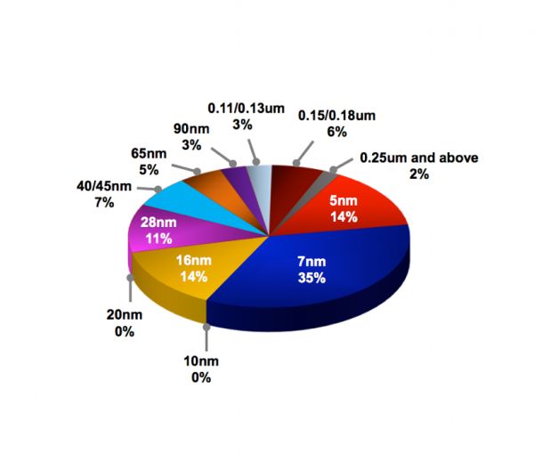 8寸晶圆的代工厂在国外并不多,大多是一些IDM厂商,例如英飞凌、TI、意法半导体等。在中国台湾,虽然台积电(NYSE:TSM)、日月光这些芯片代工大厂也会做一些8寸晶圆的代工,但订单没有那么灵活,主要是几个固定的大客户。另外,台积电的产能中,先进制程占了大约一半,很难再有多余的产能出来。从台积电2021年一季度各制程营收占比就可看出,28纳米以上(含28纳米)的成熟制程占其营收的37%。