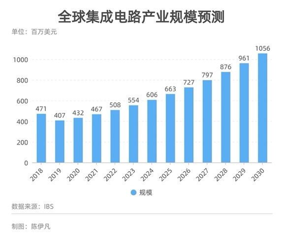 芯片行业的年增长在15%以内,这个增长值基本在产业链的正常范围之内。根据第三方分析咨询机构IBS的数据,2018年-2030年全球集成电路产业规模的年增长基本在10%以内。目前,中国大陆晶圆代工厂的产能在扩充,但上述易通网络的专家认为,这够不上需求的增长速度。他说,他接触到的几家晶圆代工厂,订单是产能的4倍。