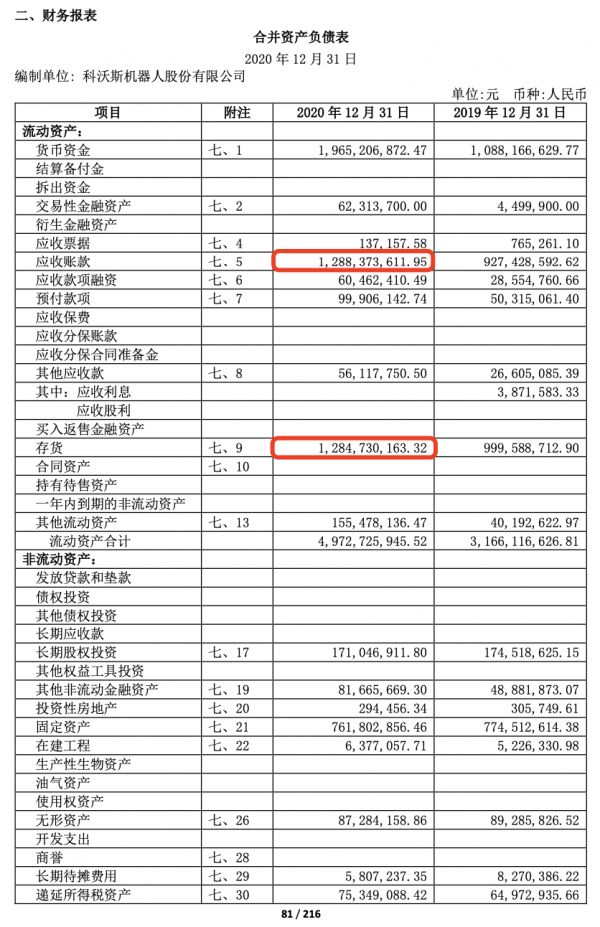 关键是,2020年科沃斯应收账款和存货增长近7亿元,而这部分是不计算在成本与收入中的,只是在资产负债表列支。