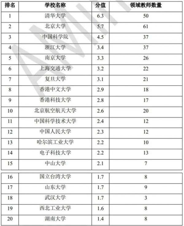 (来源:《清华智慧人才报告》)图 | 国内人工智能专业排名TOP20的高校