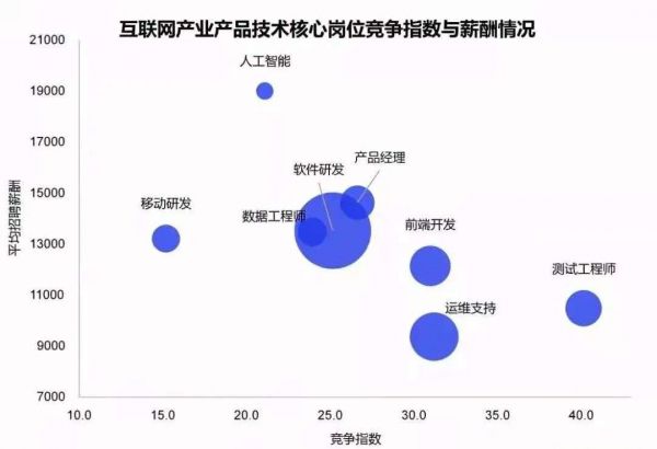 (来源:智联招聘)图 | 互联网产业产品技术核心岗位竞争指数与薪酬情况