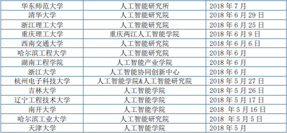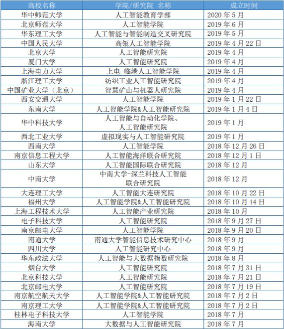 (来源:《清华智慧人才报告》)表 | 全国70所高校人工智能学院、研究院、研究所名单