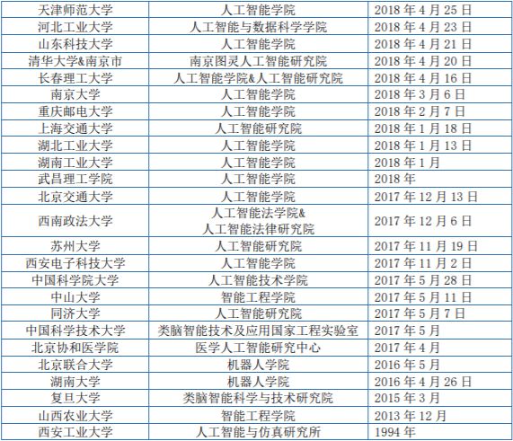 2019年3月,教育部发文批复了35所高校作为“人工智能”首批新专业建设资格,首次确定了人工智能这个本科专业,包括南京大学、浙江大学、北京航空航天大学、上海交通大学等高校在内。2020年,全国范围内获得人工智能专业首批建设资格的共有180所,北京邮电大学、复旦大学、中国人民大学、中国农业大学等名校都在列。截至目前,国内共有215所高校成立“人工智能”本科专业。这些高校之中,有60所双一流大学(占比28%),其他155所为普通本科院校。