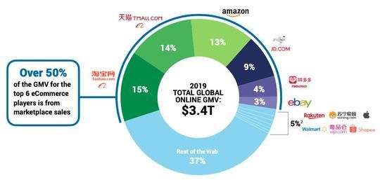2020年全球电子商务主要平台市场份额/来自:Activate Consulting