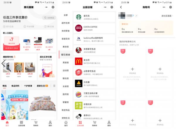 腾讯惠聚的小程序页面