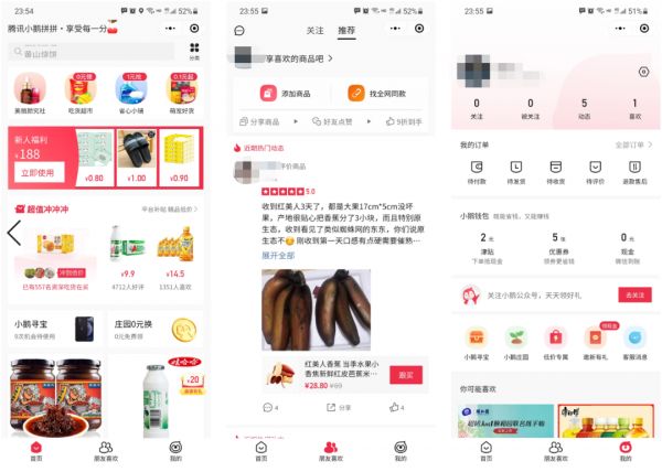 目前,小鹅拼拼的主要玩法为拼购,商品以买家推荐+拼团的形式进行呈现,类似拼多多和大众点评的综合版。但与拼多多不同的是,拼多多支持与陌生人进行拼单,小鹅拼拼却需要邀请一个真实的好友,这在小鹅拼拼的宣传中,也成为真实拼购的差异化方式。