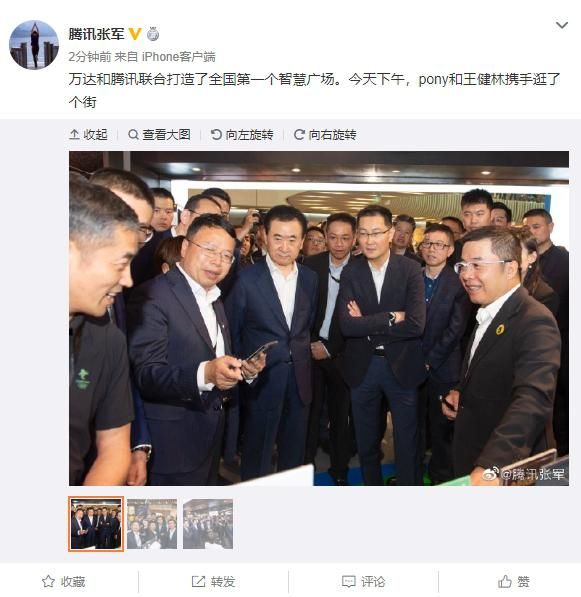与此同时,腾讯公关总监张军在微博上晒出了王健林和马化腾参观丰台科技园万达广场的现场照片,并表示“今天下午,pony和王健林携手逛了个街 ???”。