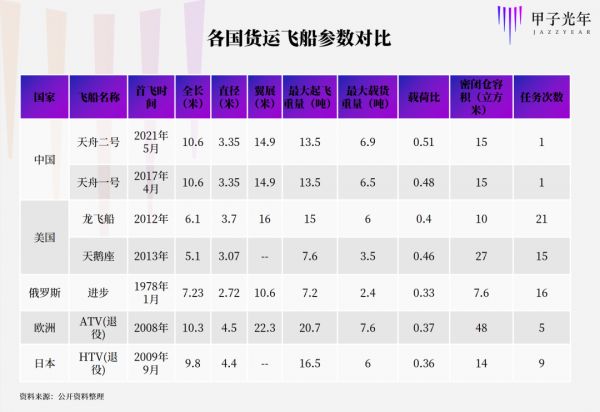 货运飞船是空间站计划的一部分,相比载人飞船,其技术安全性的要求相对较低,但运力更高,是目前向太空运送货物的理想工具。跟国外相比,中国货运飞船的发展路线更具特色,优势能力相对更突出。
