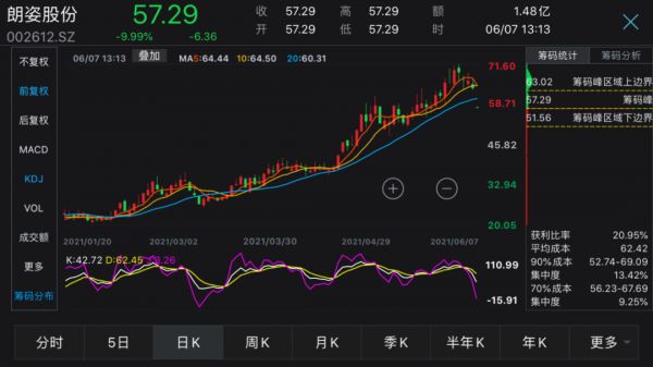 二级市场上,自去年11月以来,朗姿股份股价累计涨幅达600.99%。6月1日,其股价更是一度摸上71.60元/股的新高,较近两年的最低位翻了10倍以上。