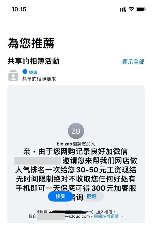 部分用户的相簿和日历之所以会收到垃圾共享邀请,主要可以从以下两个角度来看待这一问题: