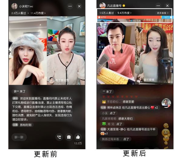主播PK:可以理解为一次流量的共享,两个主播连麦,相互往对方直播间引流。此功能在之前版本中已上线。