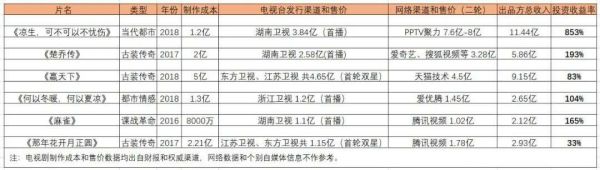 当然,《麻雀》并不是个别现象,我们还收集了 2016-2018 年市场上大火的电视剧制作成本和出售版权价格等信息,如下图: