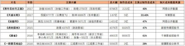当然,《麻雀》中的明星和郑爽的高片酬,在影视行业中并不是特殊例子,我们也找到了一些早年间热播的电视剧,主演片酬占制片成本的比重,普遍较高,平均在 40% 以上。
