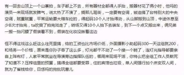或者可以想象一下,假设你是剧组里的其他基层工作人员,每天 500 元,月薪 15000,一年收入 18 万,这在剧组中,算是较好的待遇了吧。