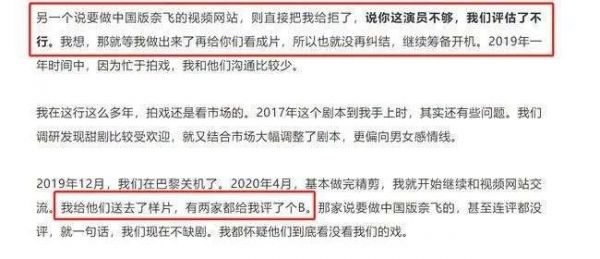 原因是,2021年3月播出的《若你安好便是晴天》主演是张翰和徐璐,这两位演员显然没在平台指定的流量演员范围中,当片子制作完成后,制片人杨利给其他两家平台送去样片,结果评级都为B,平台给的价格很低,每集只有20万。最终杨利和视频平台谈崩,只能在自己开发的APP上线。