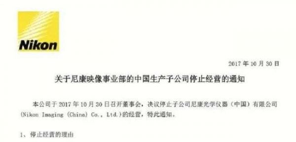 此前,尼康公司有3个相机生产基地,分别位于日本宫城县仙台市、泰国和中国。但是随着智能手机普及,相机销售量受到严重冲击,尼康在江苏无锡的生产基地已于2017年关停,而现在仙台市的相机生产基地关停后,尼康所有的相机生产线都将转移到泰国。