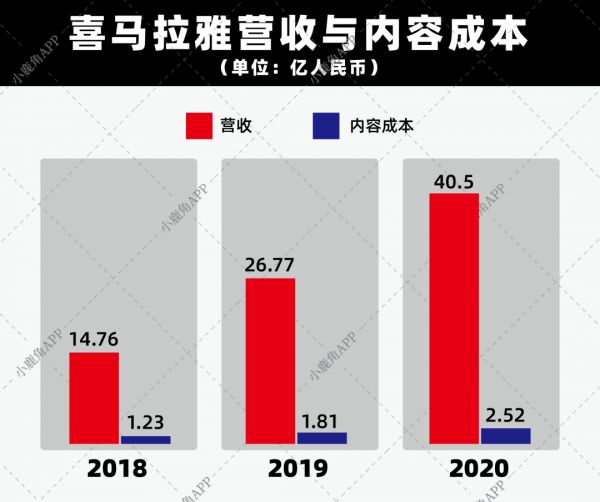 而内容成本居高不下也是行业中的普遍困境。喜马拉雅为合作伙伴、直播公会等支付的收入分成高达12.9亿元,而其2020年2.5亿的内容成本主要集中在购买版权。