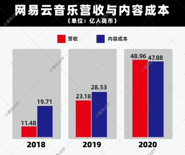 与喜马拉雅相同,网易云音乐目前专注于对音乐版权的投资来应对用户需求、对市场营销投资来扩大用户群体及参与度、对研发能力投资来改善用户体验。而更加高额的内容成本达到48亿,紧逼营收总额。