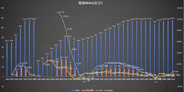 从上图可以看出,近三年以来,陌陌的月活用户规模几乎没有大的增长突破,从MAU的同比增速来看呈现下降趋势,甚至出现了用户流失的情况,这对陌陌来说可不是一件好事。