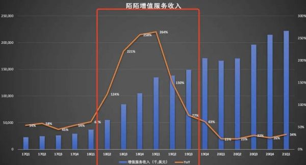 财报显示,2021年一季度,陌陌增值服务实现14.56亿元的营收,较上年同期的11.76亿元,增长23.8%,较上一季度的14.01亿元,增长42%,报告期内,增值服务收入的总收入占比为42%,高于上年同期的33%和上一季度的37%。