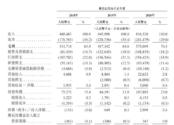 在财务方面,2018年至2020年,时代天使的营收分别为4.88亿元、6.46亿元、8.17亿元。鉴于成本结构优化、规模化生产以及使用自动化生产线等因素,时代天使的成本占比持续下降,毛利率在过去三年内逐年上升,分别为63.8%、64.6%和70.4%;净利润则分别为5818.6万元、6766.5万元、1.51亿元。