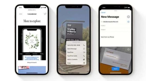 还有一个早就在安卓端普及的功能——图片文字识别,这次也终于在iOS 15实现。苹果的Live Text实况文本功能只需轻按图片,便可提取图上的文字信息继而完成拨打电话、信息发送等操作,该功能还支持7种语言实时翻译。