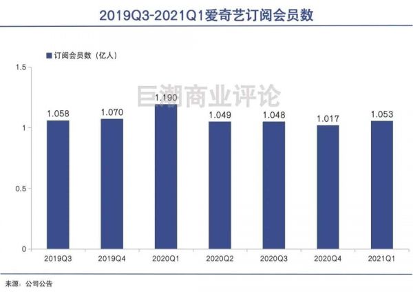 2019年,爱奇艺、腾讯视频会员规模先后过亿;但到了2021年一季度,爱奇艺、腾讯视频的会员规模分别为1.05亿、1.25亿,订阅会员规模增速明显放缓,天花板似乎不难预见。