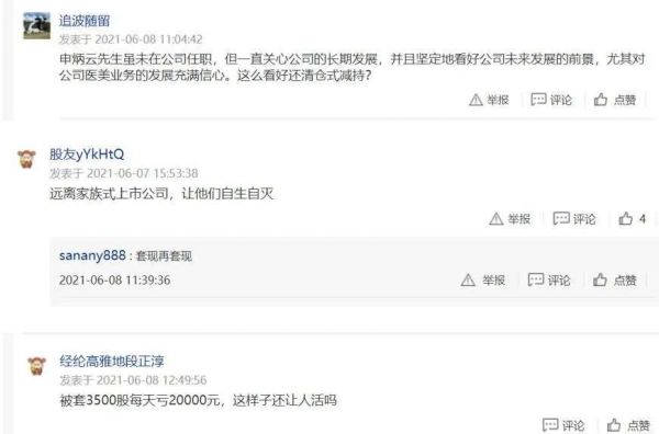 对于减持原因,朗姿股份表示:“申炳云先生年事已高,本次减持系其本人生活安排和资产规划的需要。申炳云先生虽未在公司任职,但一直关心公司的长期发展,并且坚定地看好公司未来发展的前景,尤其对公司医美业务的发展充满信心。”对此,广大股民显然并不买账,叫苦不迭。
