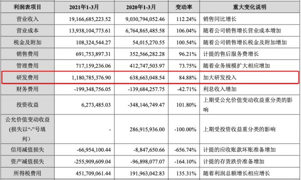 同时电池企业的研发重点一直是动力电池,所以其研发投入会更多,研发人员的团队规模也更大。宁德时代2021年第一季度财报显示,今年1~3月,宁德时代在研发上的投资金额约为11.8亿元,去年同期为6.4亿元,研发投入增长了84.88%。