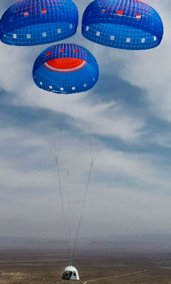 最终,太空舱会利用降落伞平稳降落回地面。
