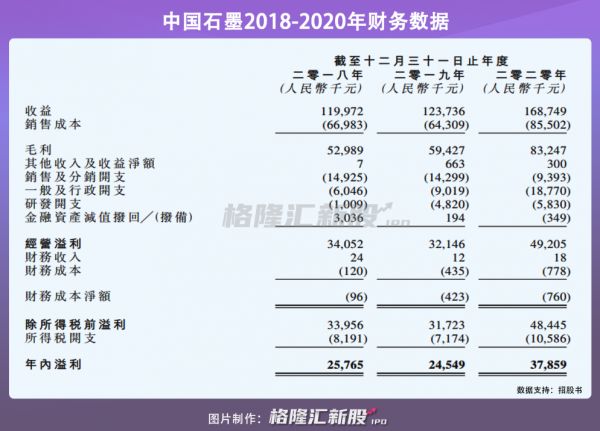 具体财务数据上,2018-2020年,中国石墨全年收入分别1.2亿、1.24亿和1.69亿元;净利润分别为2576.5万、2454.9万和3785.9万元;毛利分别约为5300万元、5940万元及8320万元,分别占毛利率的约44.2%、48%及49.3%。