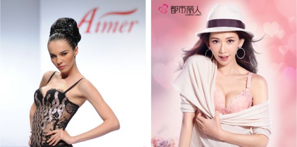 左为爱慕新代言人辛芷蕾,右为内外代言人王菲