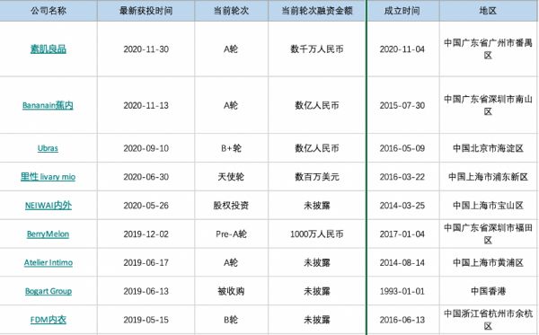 这显然也吸引了资本市场的注意。据烯牛数据,2019年-2020年,至少有8家2014年以后成立的内衣品牌获得融资。