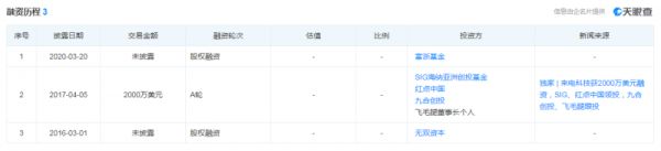 但比起“三电一兽”的其他三家,来电科技似乎并不受资本青睐。天眼查信息显示,自成立至今,来电科技共完成三轮融资,投资方包括富浙基金、SIG海纳亚洲创投基金、红点中国、九合创投、飞毛腿董事长个人、无双资本等。
