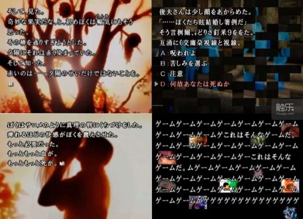 以推理小说的标准来看,《弟切草》主线故事只能说是过得去。不过Chunsoft很好地利用了电子游戏的优势,在电子小说的游戏模式中增加了大量的选择支,一步走错就可能死于非命,甚至原本故事的恐怖推理风格都可能因为选择的组合不同,变成魔幻志怪或胡闹搞笑。这自然极大提升了游戏的重复可玩性。在Leaf把这套玩法学去开发了《雫》之后,大量有想法但没人员、缺资金的小团队都看上了这种低成本的游戏模式——追溯下来,说是Chunsoft的这一个创意养活了大半个日本Galgame业界也不为过。