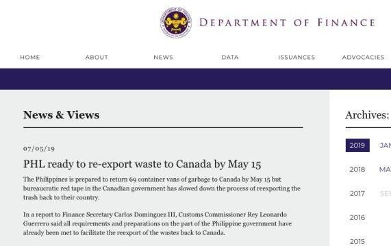 “总统确信,我们不是垃圾收集者,因此他命令菲律宾不再接受来自任何国家的任何废弃物。”