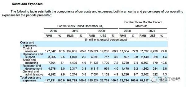 招股书显示,滴滴拥有7000名研发人员,研发人员占比45%,2018年、2019年和2020年,研发支出分别为44亿元、53亿元和63亿元,2021年第一季度近19亿元人民币。