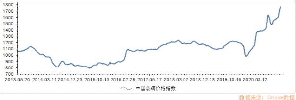 图:玻璃价格指数在2015年创历史新低。来源:Choice