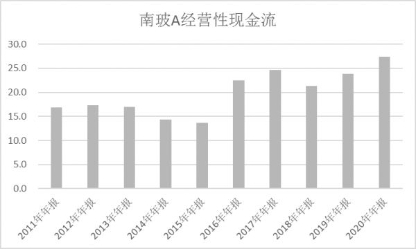 图:2020年南玻A经营性现金流创下新高。来源:choice