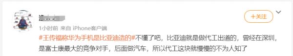 更有网友表示,比亚迪就是做代工出道的,曾经在深圳,是富士康最大的竞争对手,后面做汽车,所以代工这块就慢慢的不为人知了 。